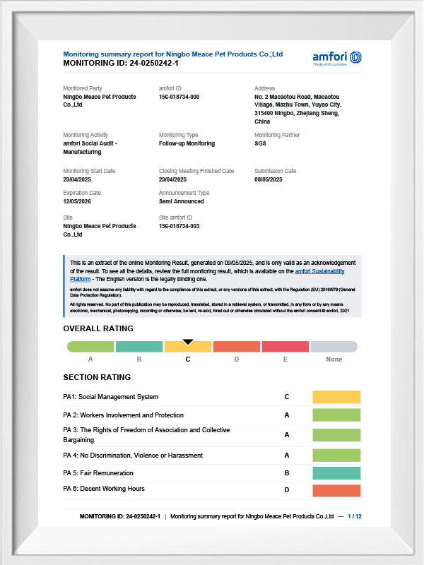 | Samenwerking pijler | Gemeenschappelijke handelaar / kleine fabriek | Ningbo Meace Huisdier Producten Co., Ltd. |