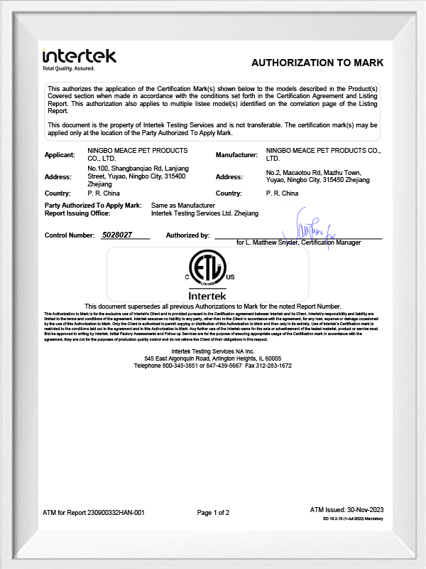| R&D-garantie | Componentmontage gekocht | Onafhankelijke R&D en matrijzenproductie door Ningbo Meace Huisdier Producten Co., Ltd. |
