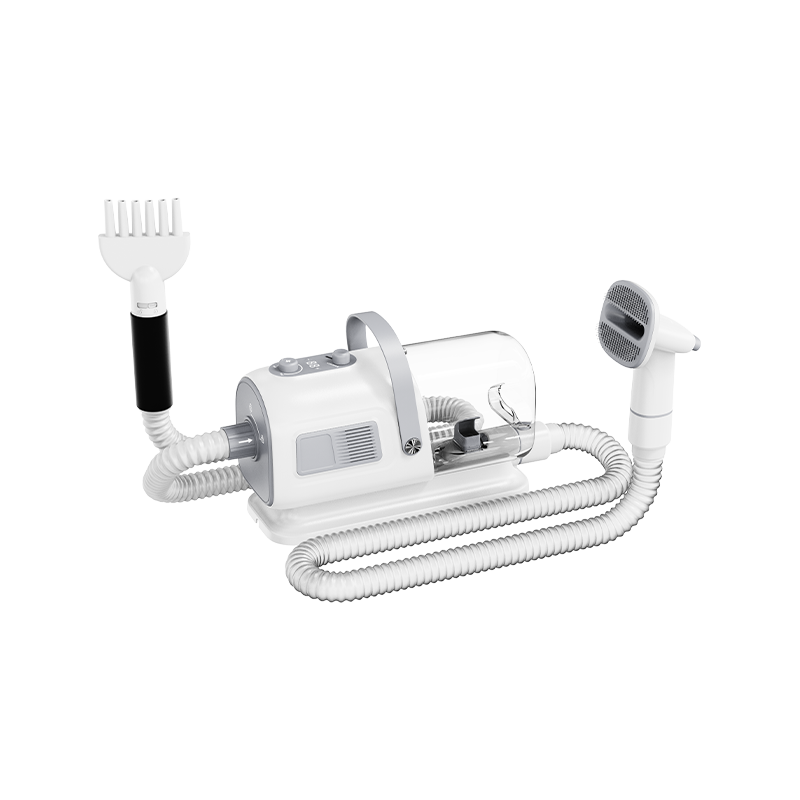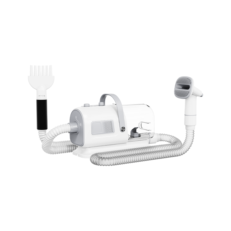 De alles-in-één machine voor het stofzuigen en föhnen van dierenharen is een veelzijdig apparaat voor het verzorgen van huisdieren dat functies voor het stofzuigen, blazen, trimmen en kammen van haren in één combineert, speciaal ontworpen voor eigenaren van huisdieren. Het verbetert de efficiëntie en het comfort van de haarverzorging aanzienlijk. Dit multifunctionele apparaat zuigt niet alleen snel de haren van huisdieren op, maar maakt het ook mogelijk om de vacht te föhnen door de windsnelheid aan te passen.