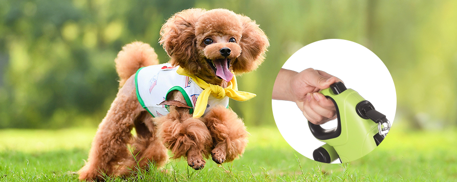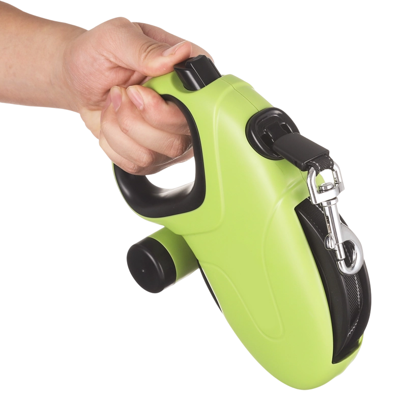 De riem beschikt ook over een opbergfunctie voor vuilniszakken, waardoor eigenaren van gezelschapsdieren op elk gewenst moment gemakkelijk hun huisdieren kunnen opruimen. De slim ontworpen opbergdoos zorgt ervoor dat vuilniszakken direct bij de hand zijn, waardoor het probleem van het vergeten mee te nemen vuilniszakken wordt vermeden als je naar buiten gaat en de openbare omgeving schoon blijft.